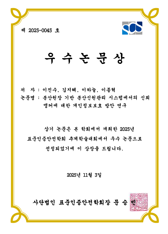 손우영 학생은 행동 기반 로그인 분석을 활용한 Keycloack용 AI 기반 위험 적응형 MFA 프레임워크에 대해 발표하였습니다. 해당 논문에 대한 정보는 아래와 같습니다.