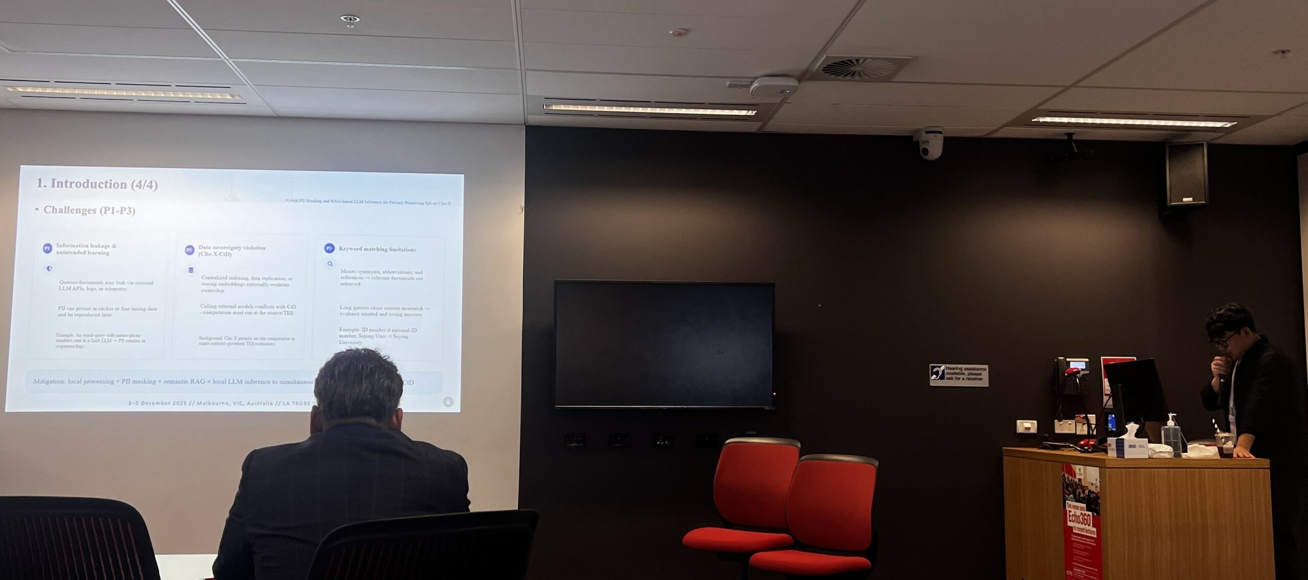 권순홍 학생은 Clio-X에서 개인정보보호를 위한 QA에 하이브리드 PII 마스킹 및 RAG 기반 LLM 추론에 대해 발표하였습니다 . 해당 논문에 대한 정보는 아래와 같습니다.