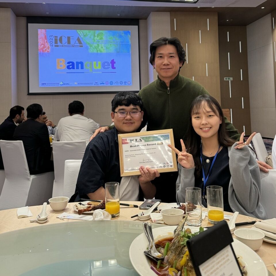 이번 ICEA 2023 컨퍼런스에서 권순홍 학생이 작성한 논문 “VDIRS: Vuln “VDIRS: Vulnerable Docker Image Response System”은 최우수 논문으로 선정되어 학회 최우수 논문상인 ‘Best Paper Award (Gold)’를 수상하였습니다. 국제학술대회에서 엄청난 결과를 만들어낸 권순홍 학생의 최우수 논문상 수상을 다시 한번 축하드립니다~!!