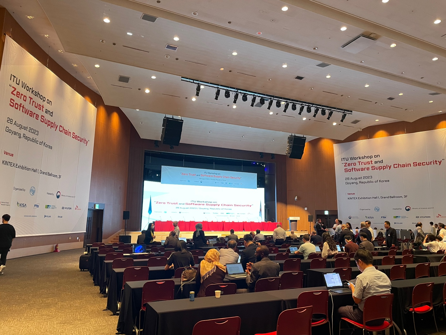 2023년 8월 29일(화)부터 9월 8일(금)까지 일산 킨텍스에서 국제전기통신연합 전기통신표준화 부문(ITU-T) 정보보호연구반(SG17) 하반기 국제회의가 개최되었습니다. 이번 ITU-T SG17 국제회의에는 이종혁 교수님과 이태양 학생, 이진수 학생이 참석하였습니다. 우리나라는 2017년부터 의장국(의장 순천향대학교 염흥열 교수님, 2017~2014년)을 수임하고 있으며 SG17이 구성된 2001년 이래로 2006년 상반기 회의(제주)에 이어 17년 만에 한국에서 회의가 유치되었습니다. 이번 회의에서는 전 세계 43여개국 346여명의 사이버보안 전문가가 참석하여 사이버보안 국제표준 개발을 위한 열띤 토론이 펄쳐졌습니다. 회의 전날인 8월 28일(월)에는 사전 워크숍으로서 ITU Workshop on “Zero Trust and Software Supply Chain Security”이 개최되어 제로트러스트 및 소프트웨어 공급망 보안의 필요성과 구현 방안 등을 논의하였습니다.