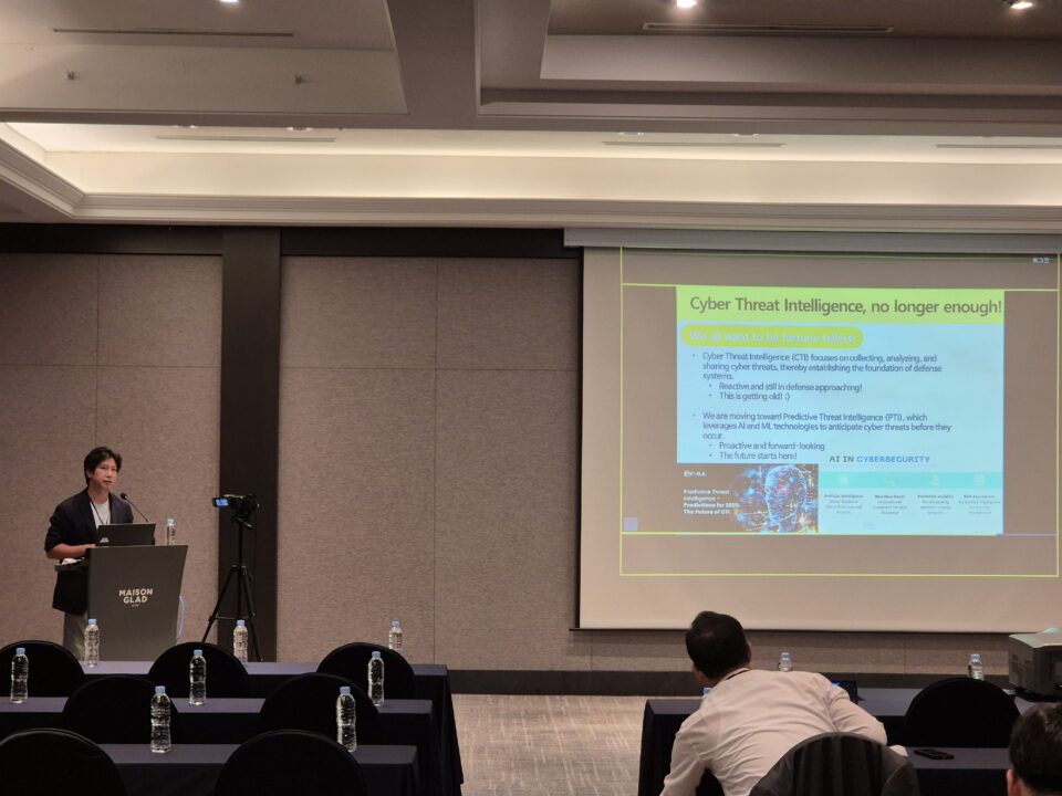 또한, 이종혁 교수님께서는 “Beyond Reaction: Proactive Cyber Threat Intelligence with Graph Neural Networks and MITRE ATT&CK”을 제목으로 발표를 해주셨습니다. 이 외에도 “드론 안티재밍 기술”, “생성형 LLM 보안” 등 최신 이슈를 다룬 다양한 주제들이 소개되었습니다.